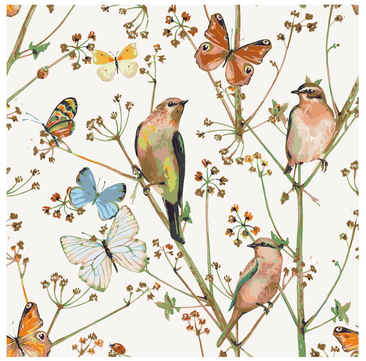 MALUJEŠ Malování podle čísel - PTÁČCI S MOTÝLKY Rozměr: 80 x 80 cm, Rámování: vypnuté plátno na rám